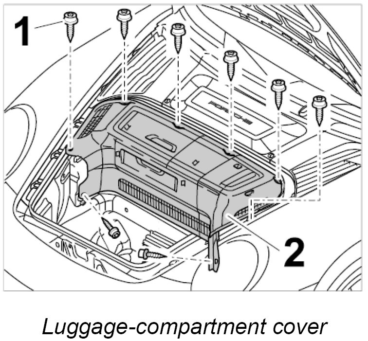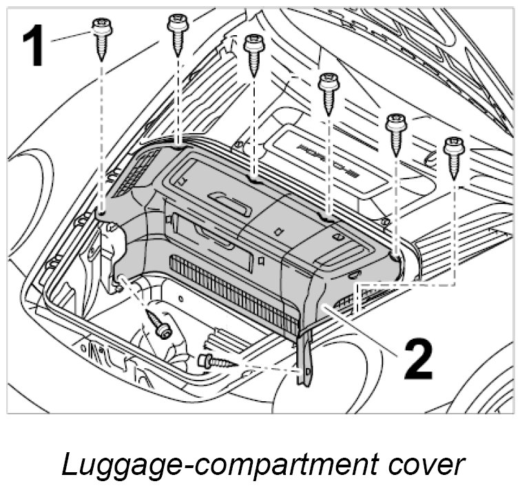 2. USA version: Remove luggage-compartment lining -2- by unscrewing the eight sheetmetal screws -1-.