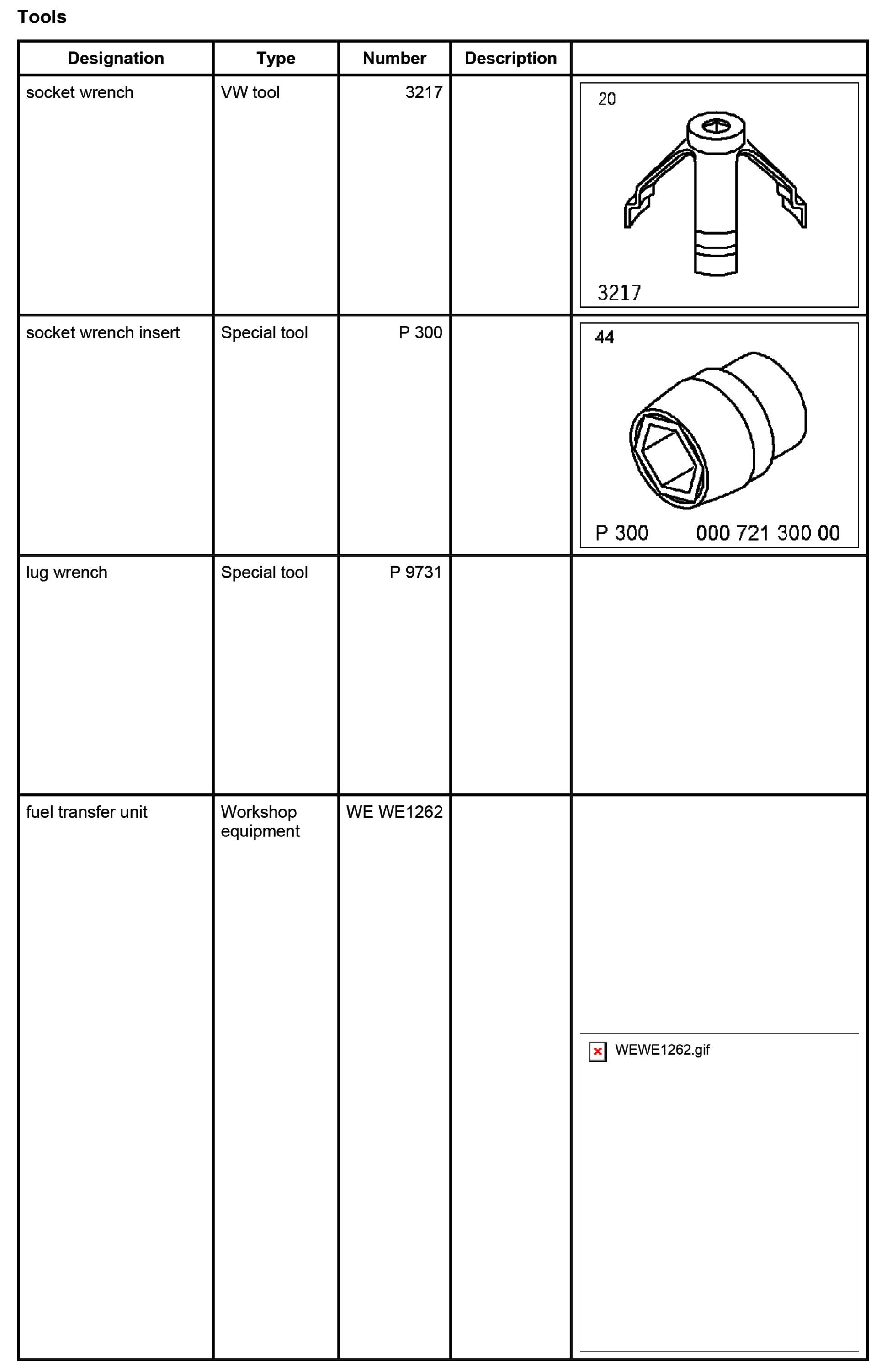 8. Empty the fuel tank. Use the fuel transfer unit WE WE1262 to do this.