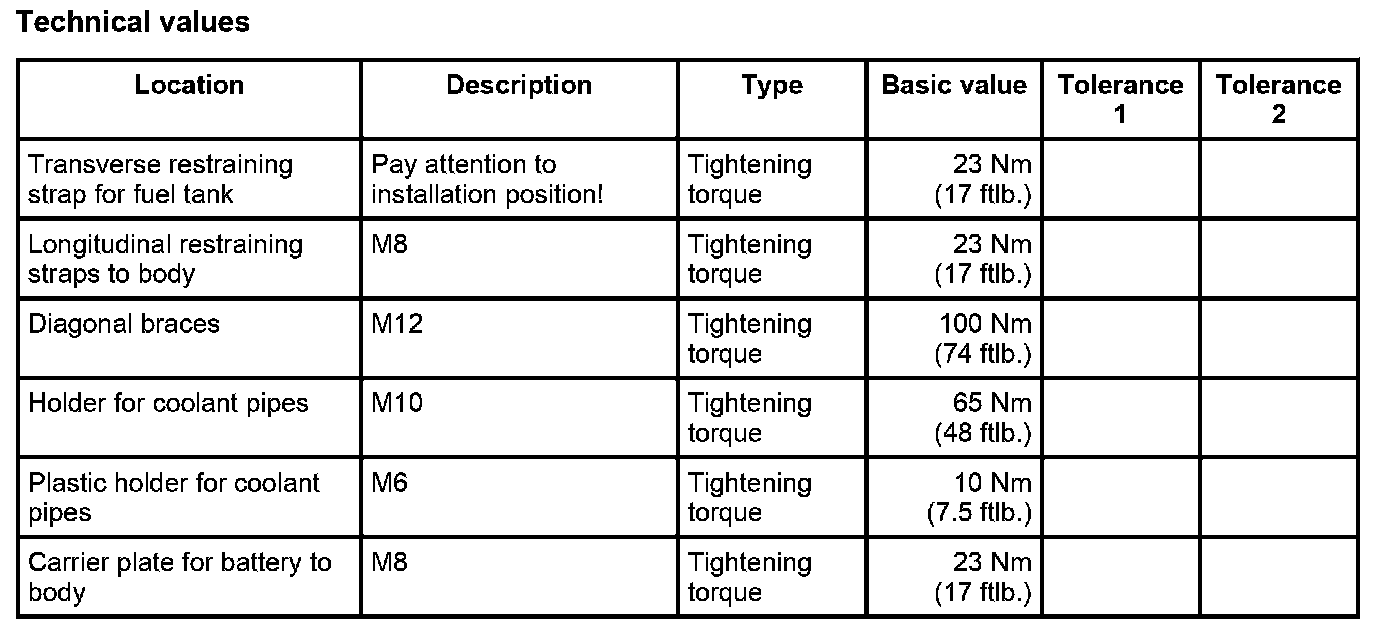 10. Install carrier plate for battery. - Tightening torque: 23 Nm (17 ftlb.).