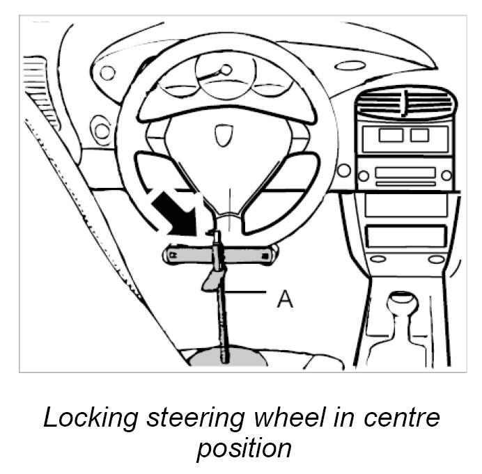 3. Move steering wheel to centre position (front wheels straight ahead) and lock it with the steering-wheel holder -A-.