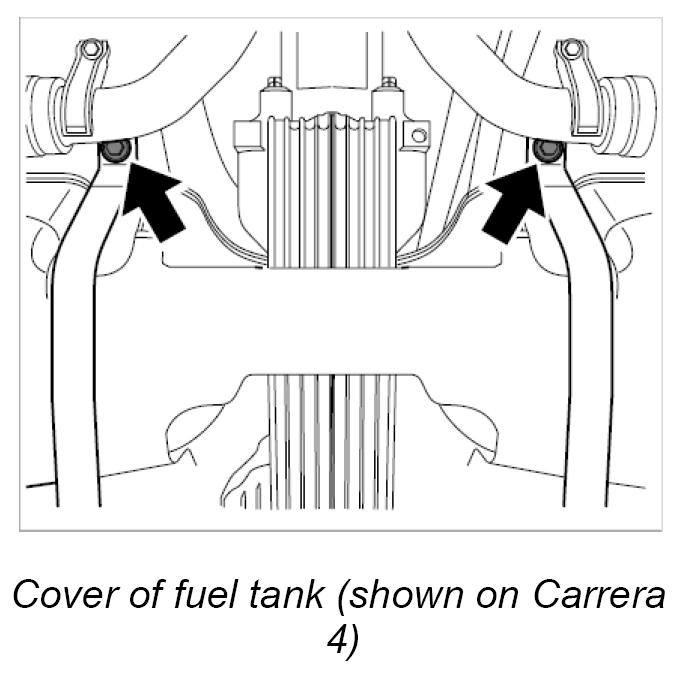 14. Remove longitudinal restraining straps for securing tank and take off cover of fuel tank.