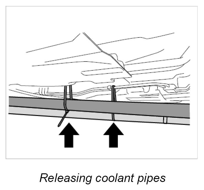 6. Fit plastic holder for coolant pipes. - Tightening torque: 10 Nm (7.5 ftlb.)