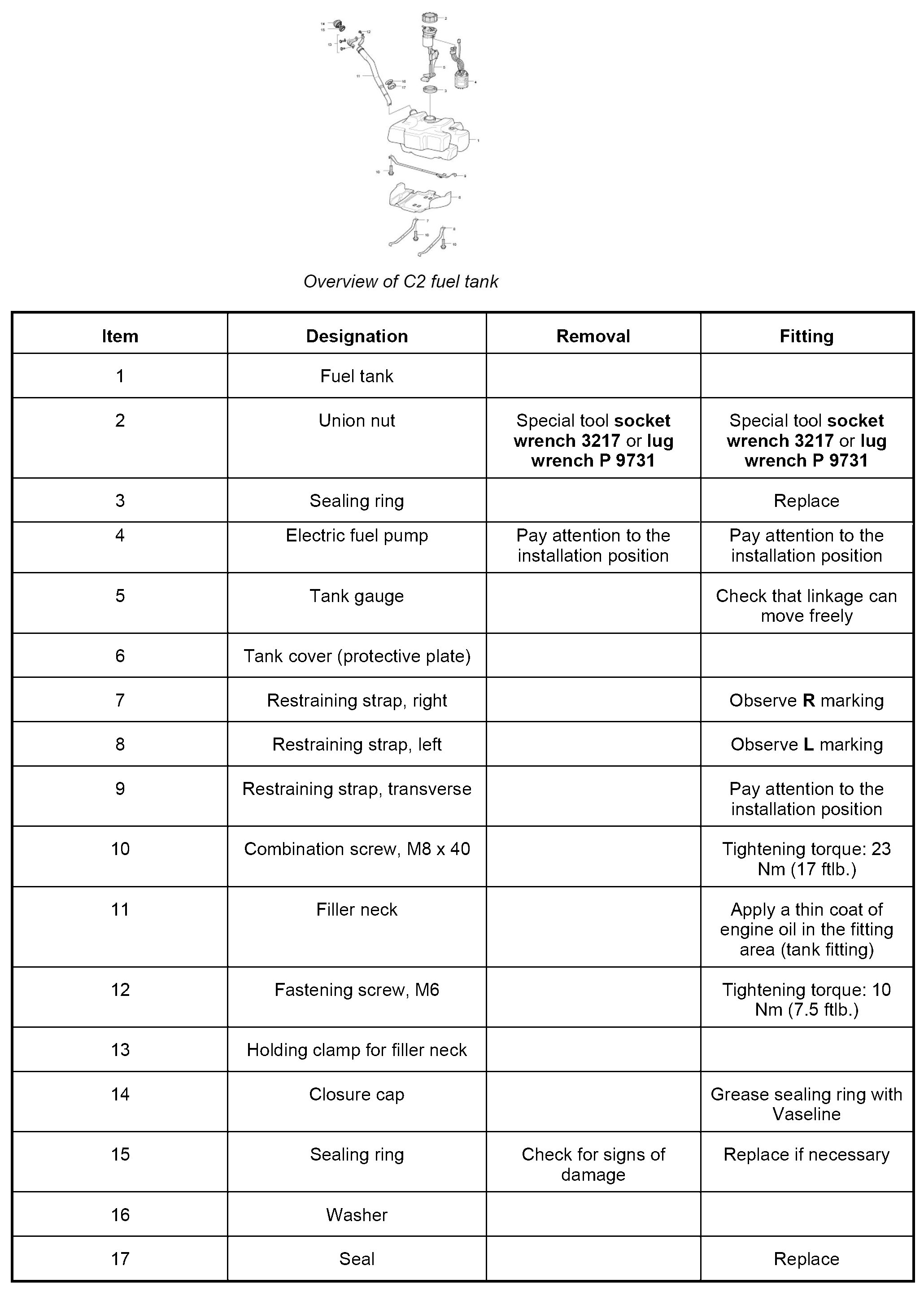 - Be particularly careful with the fuel-level sensor flange when levering out or fitting the fuel tank.
