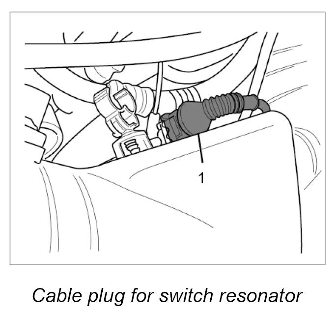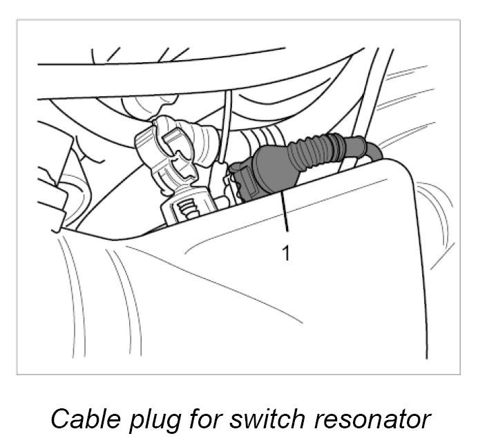 4. Connect cable plug for switch resonator to switch-over valve -1-.