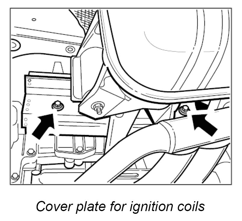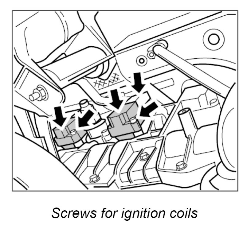 3. Unscrew two M6 x 25 fastening screws -Arrows- on each ignition coil and remove the six ignition coils individually.