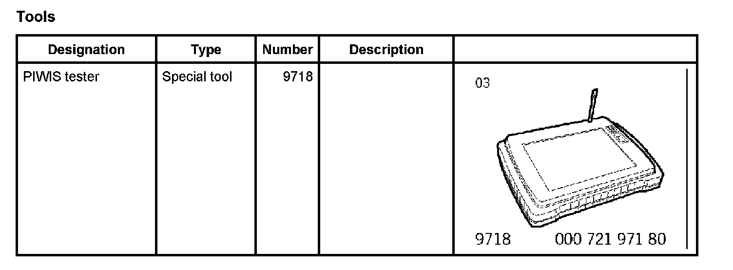 ^ The PIWIS tester 9718 instructions take precedence and in the event of a discrepancy these are the instructions that must be followed. Deviations may occur with later software versions.
