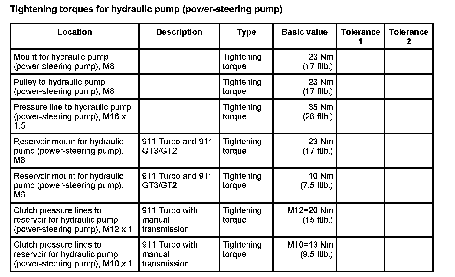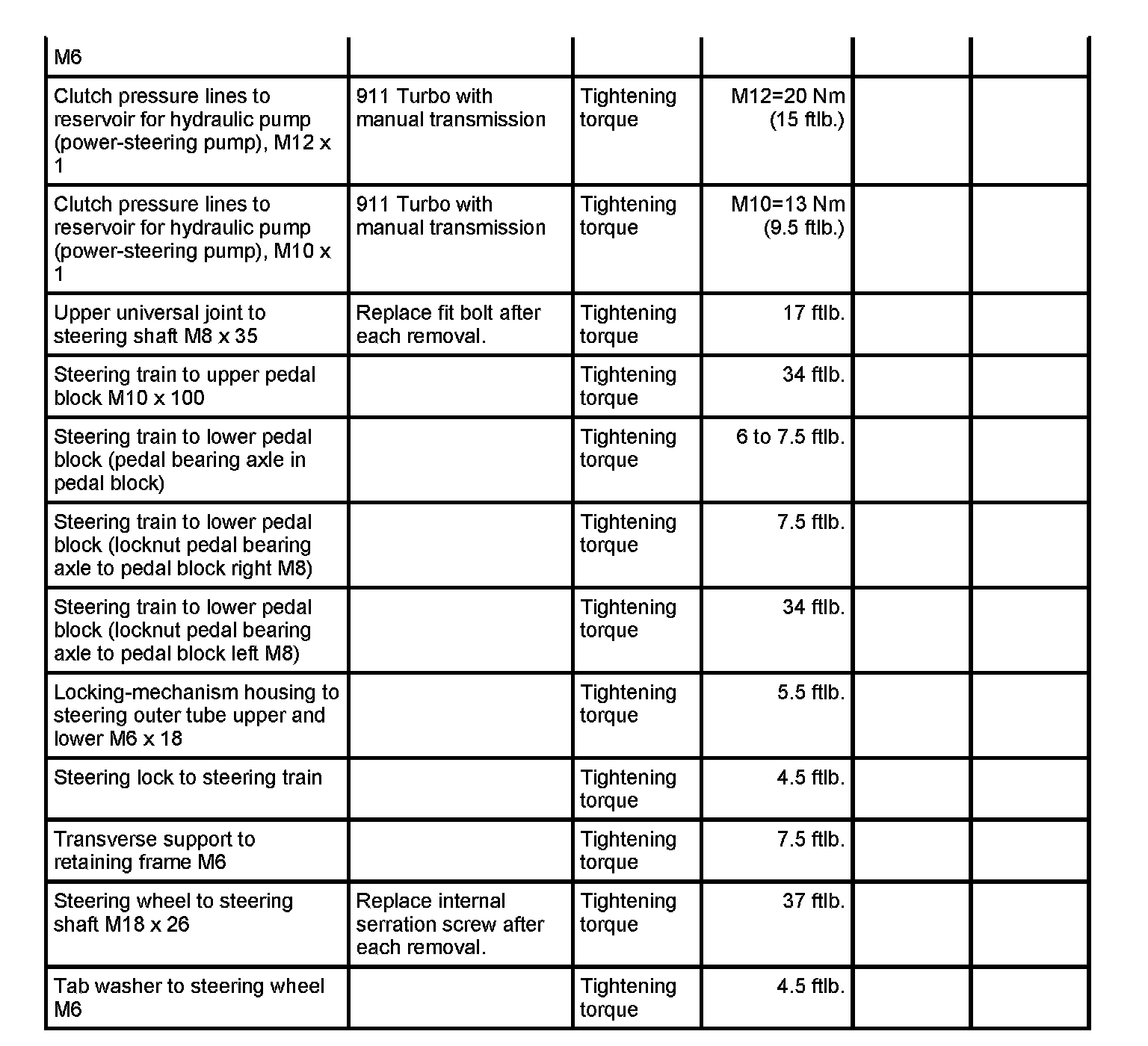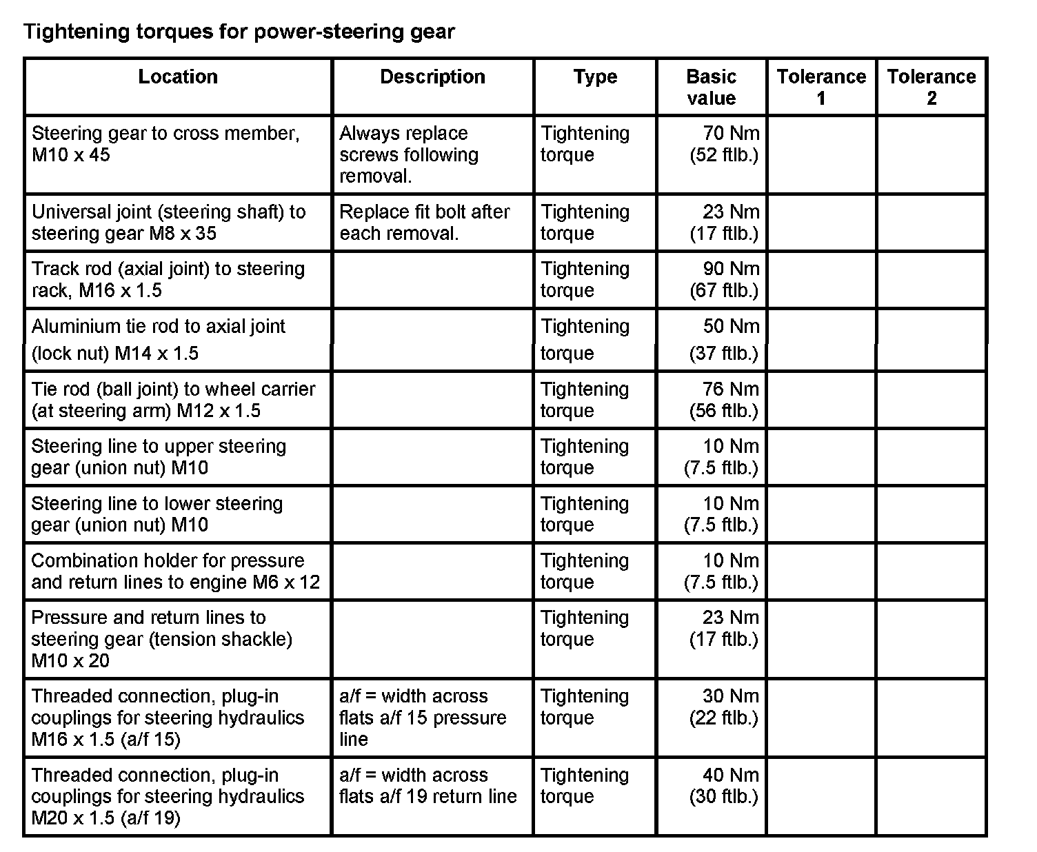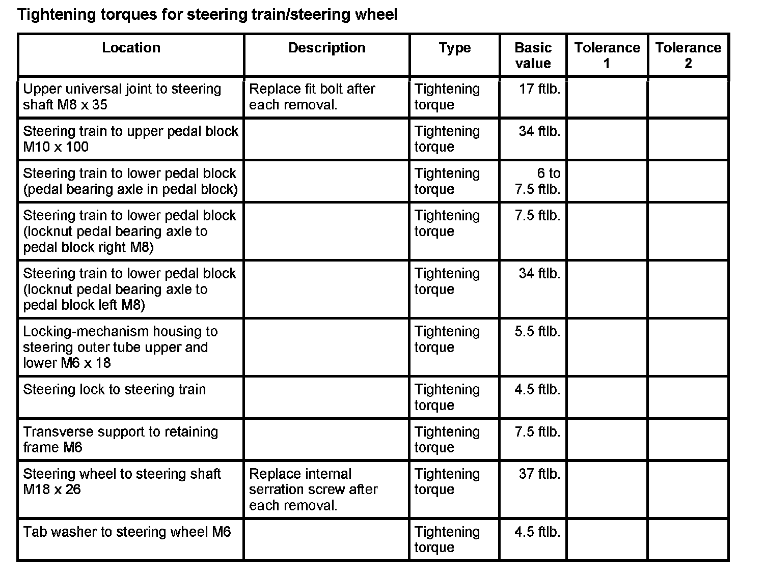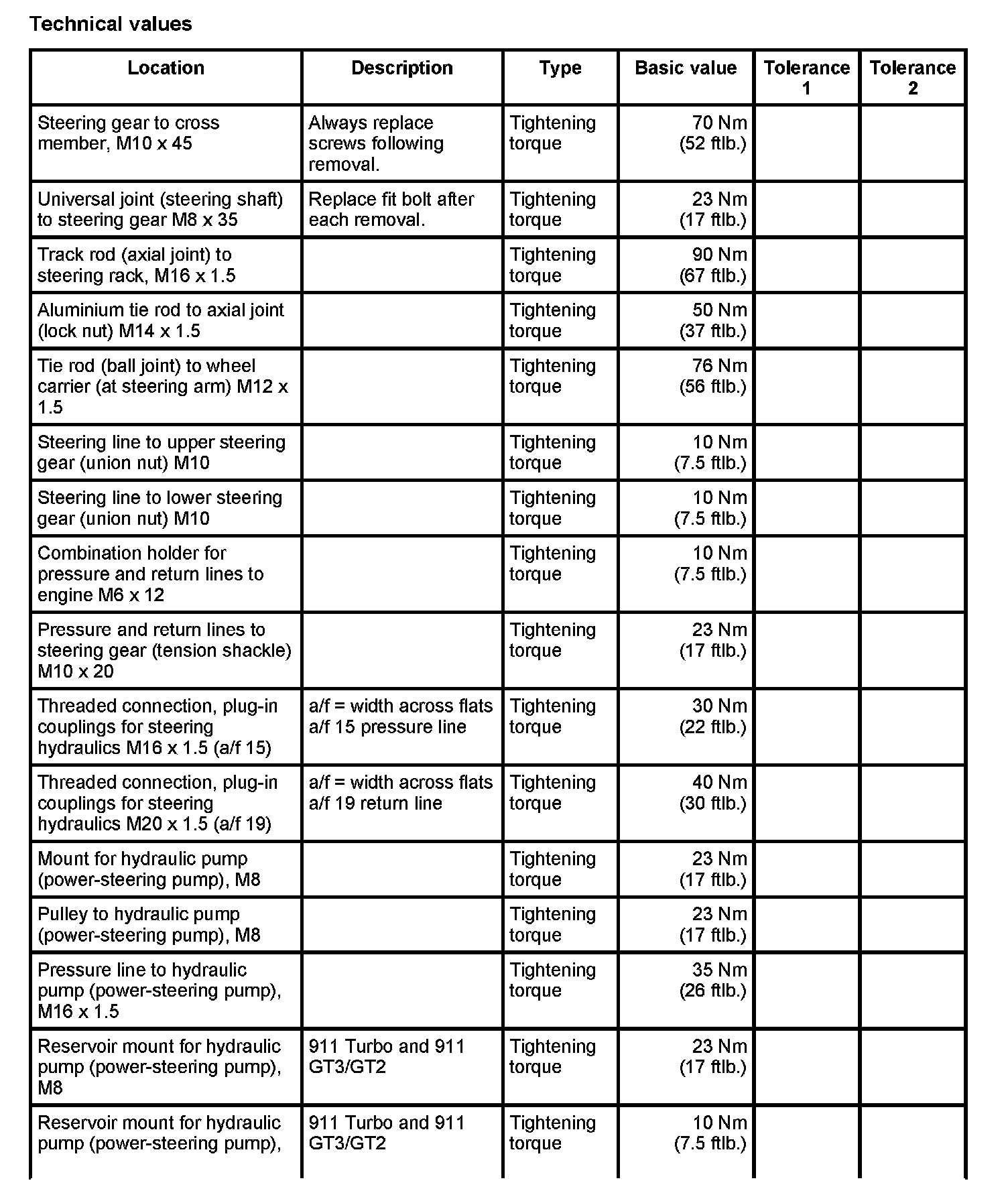 WM 4800TW Tightening torques for