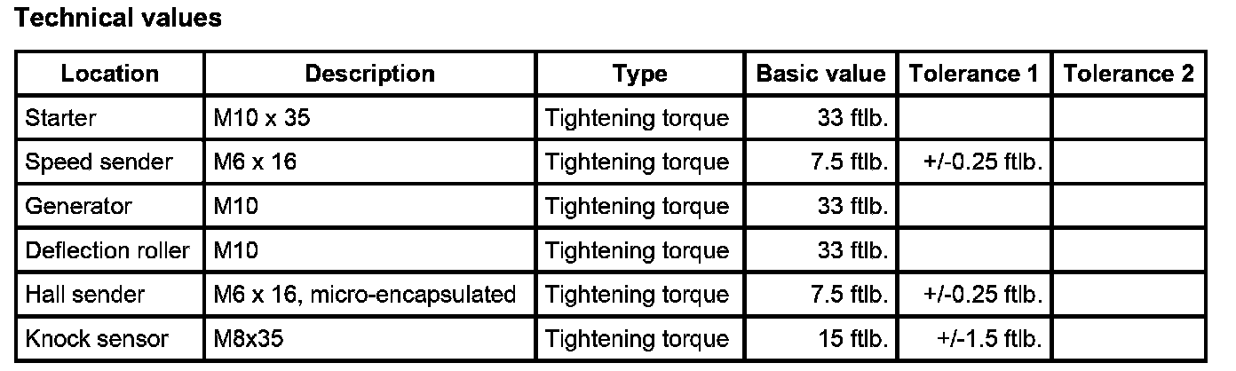 Technical Data, Engine Electronics