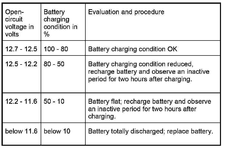 1. Check the battery charging condition according to the operating instructions for the relevant rapid-start battery charger.