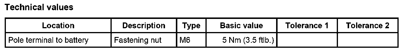 4. Connect the negative cable. - M6: 5 Nm (3.5 ftlb.)