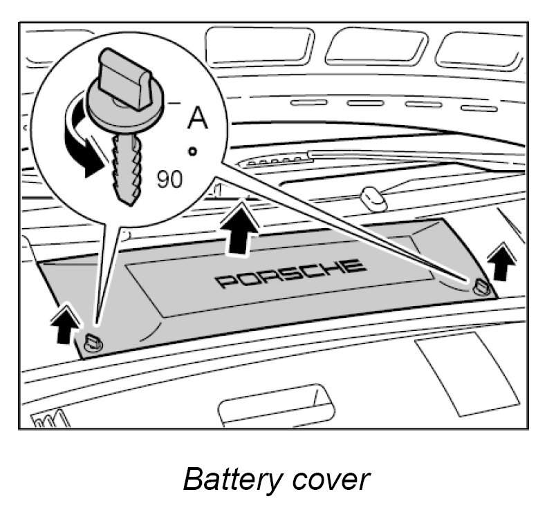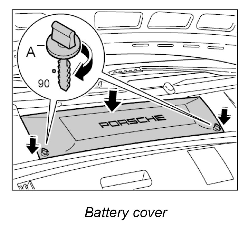 1. Open the turn-lock caps -A- of the battery cover and take off the plastic lid.