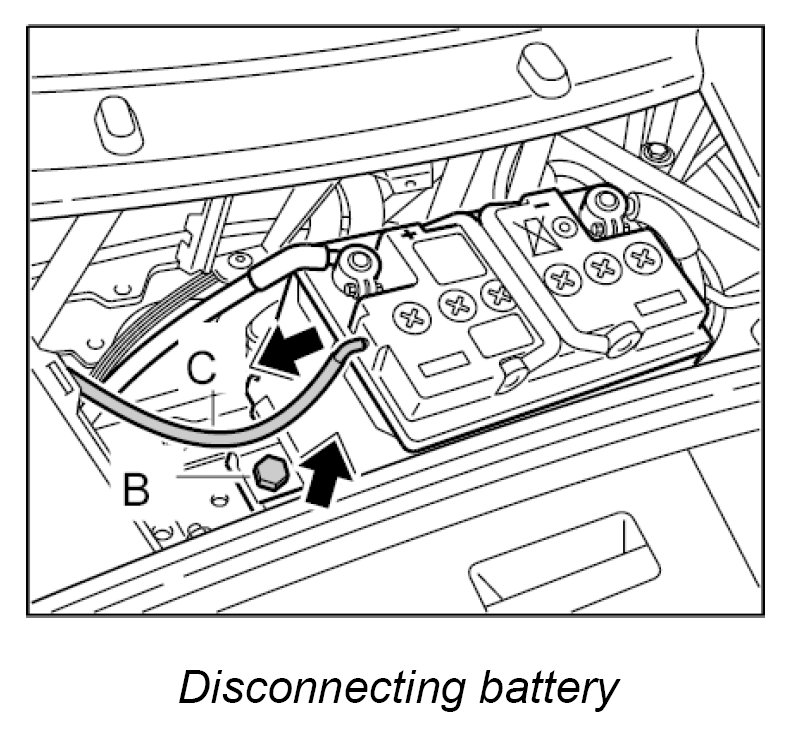 - Disconnect and reconnect battery with extreme caution. Risk of short circuit and explosion.