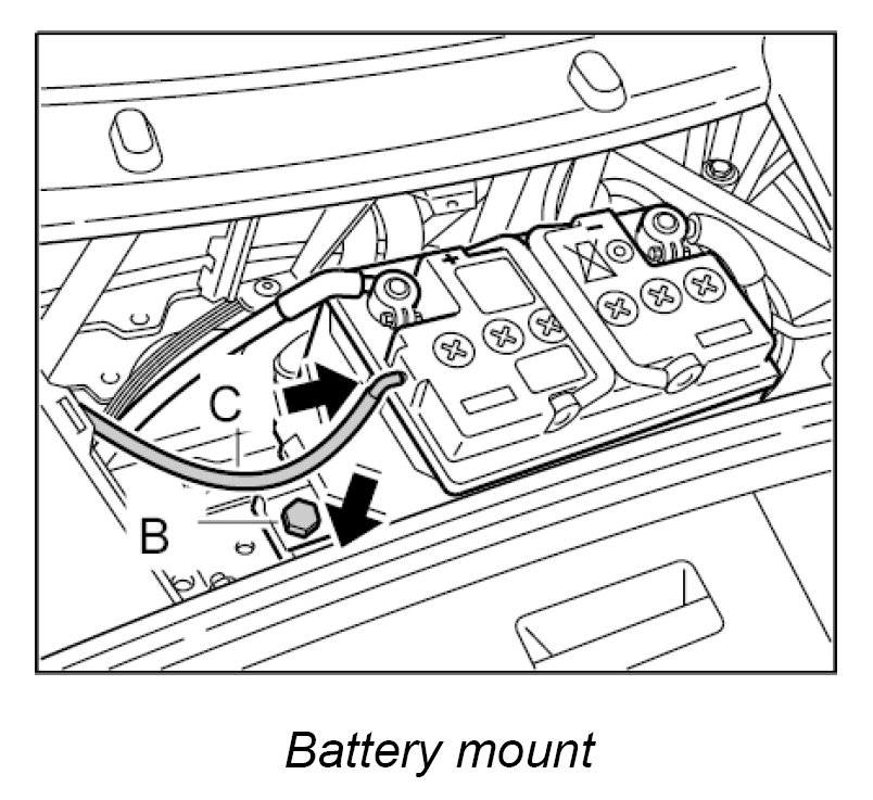 2. Fit the battery mount and secure with the fastening screw -B-. - M8: 23 Nm (17 ftlb.)
