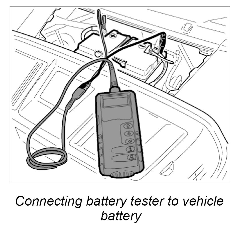 INFORMATION: Before checking the battery with a battery tester, the voltage at the battery must remain static for a short time.