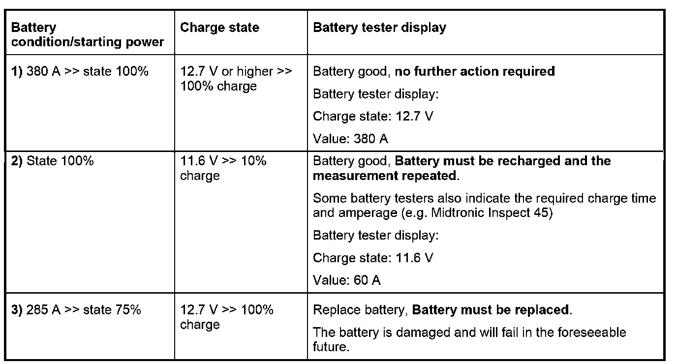 INFORMATION: The description given below is a general description. It is therefore important to follow the directions in the operating instructions for the battery tester used.
