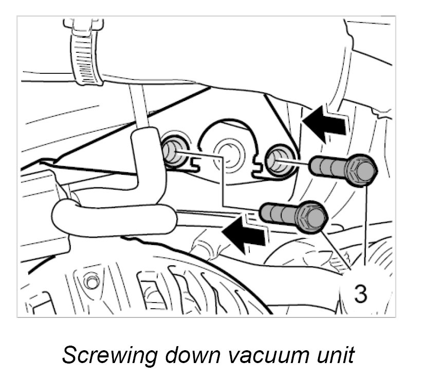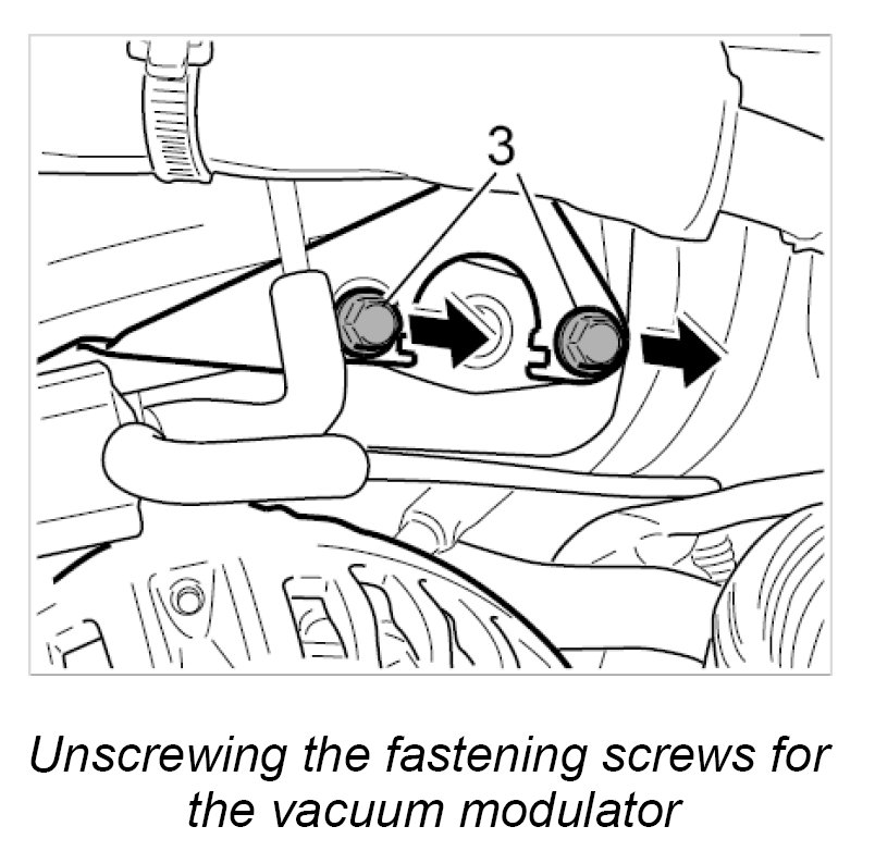 2. Unscrew the two fastening screws -3- for the vacuum modulator.