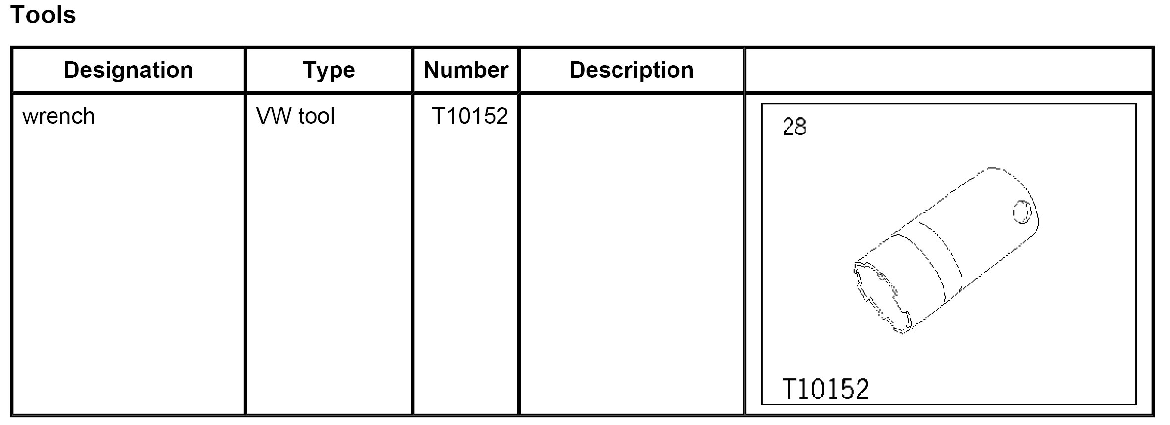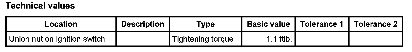 2. Position ignition switch in the instrument panel from below. Position union nut, re-adjust switch and tighten union nut using wrench T10152. - Tightening torque: 1.1 ftlb.
