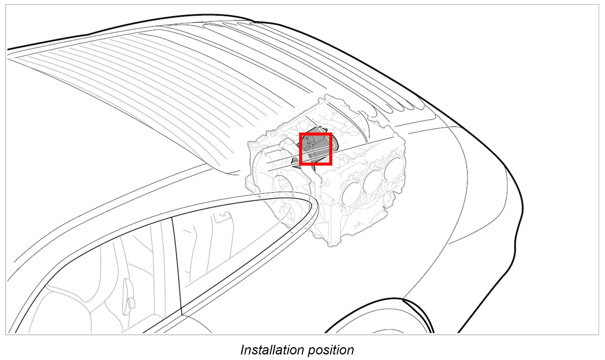 1. Insert and position starter into engine compartment, rotating it slightly lower.