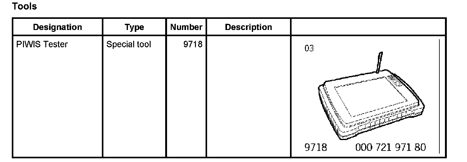--> After working on wheel suspension parts, when replacing the steering-angle sensor, and after changing the wheel alignment values, calibrate the steering-angle sensor using the PIWIS Tester 9718.