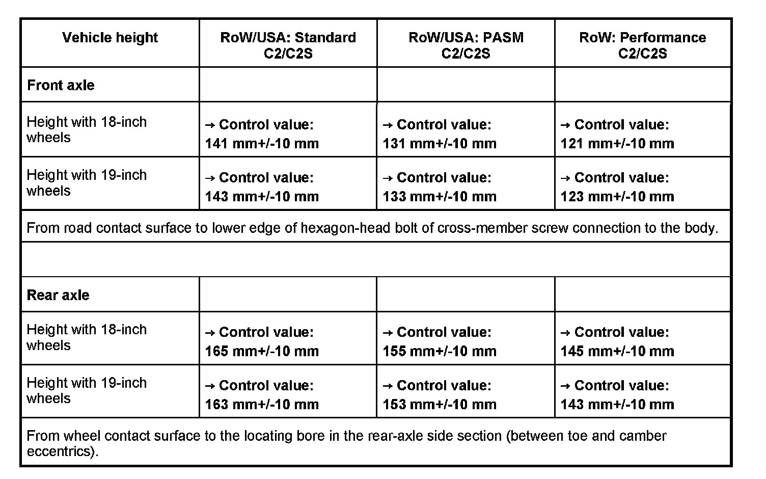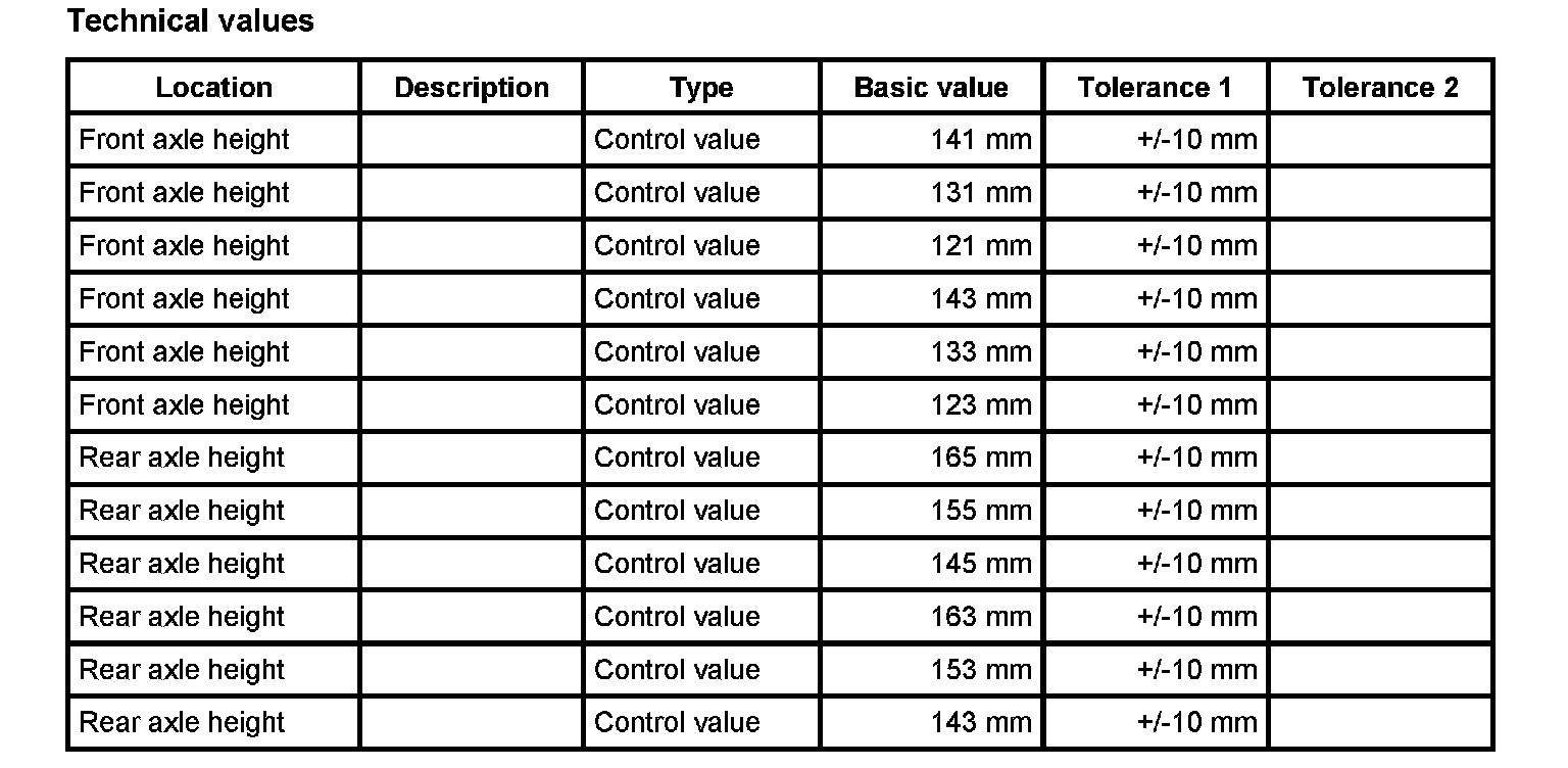 WM 4400TW Adjustment values for suspension alignmentVehicle height