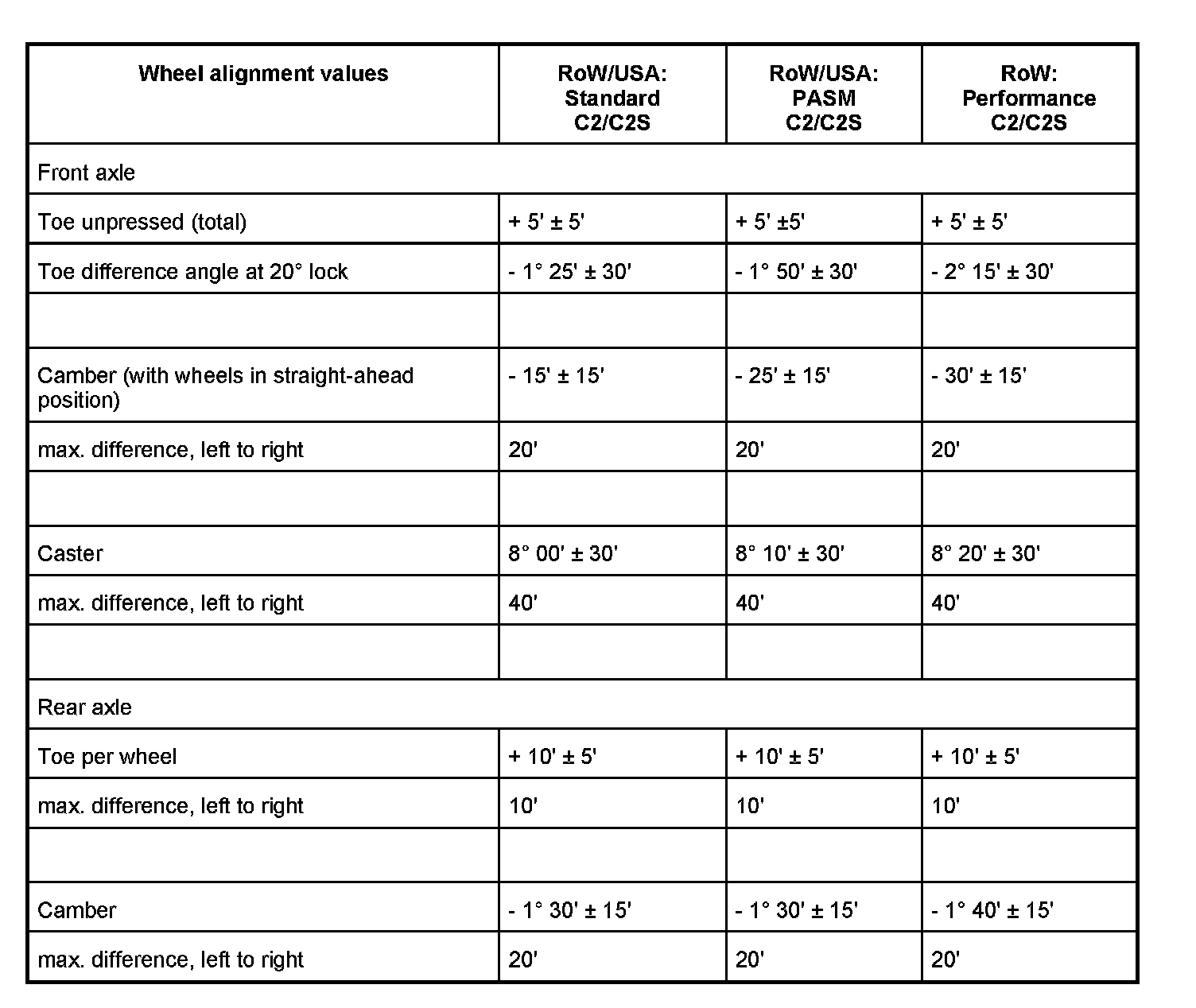 Adjustment Values For Suspension Alignment