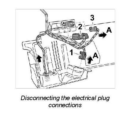 6. Release plug connections -1, 2, 3- and remove -Arrows A-.