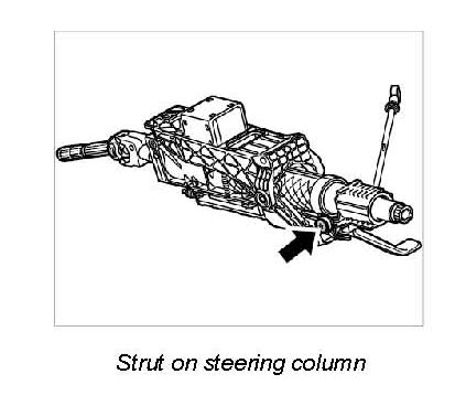 2. Loosen strut on retaining frame (arrow shows mount on steering column).