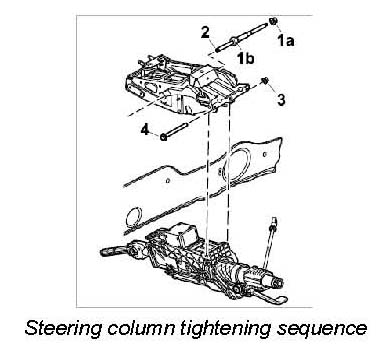2. - Lock nut right -1a- (tightening torque 10 Nm (7.5 ftlb.)). Then lock nut for steering column -1b- (tightening torque 46 Nm (34 ftlb.)).
