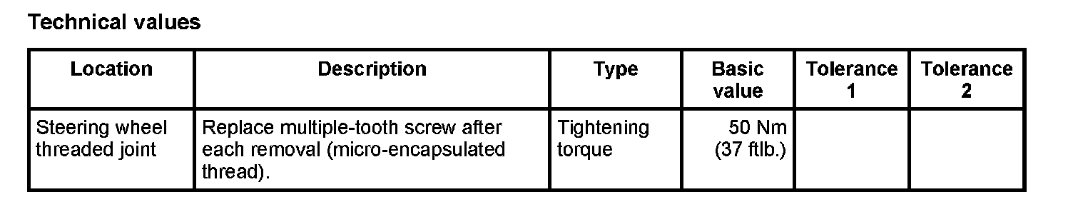 ^ The steering wheel is made of magnesium alloy. The tightening torques must be strictly observed.