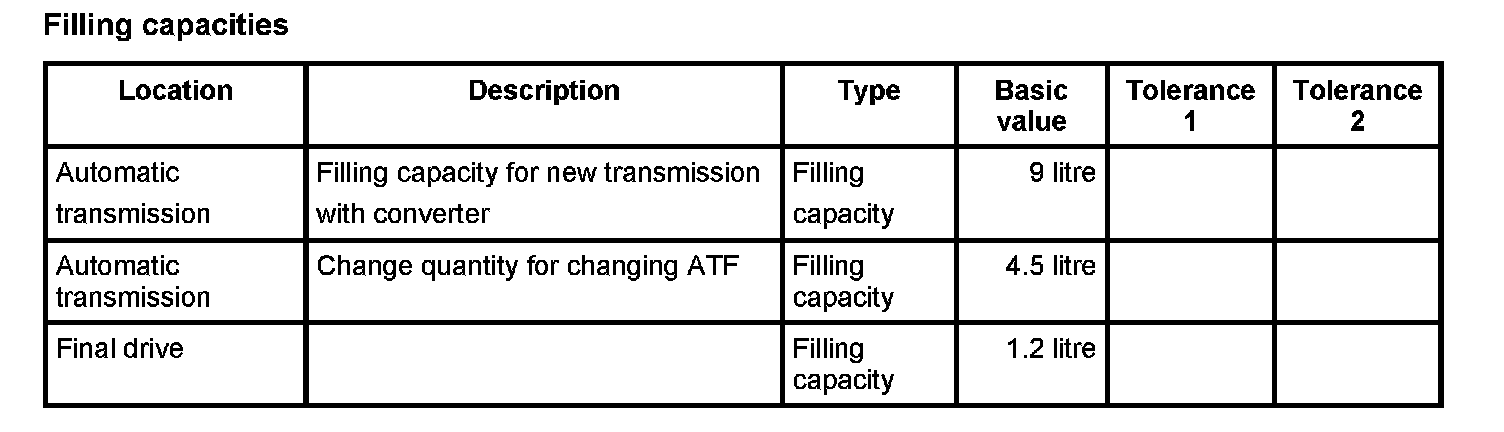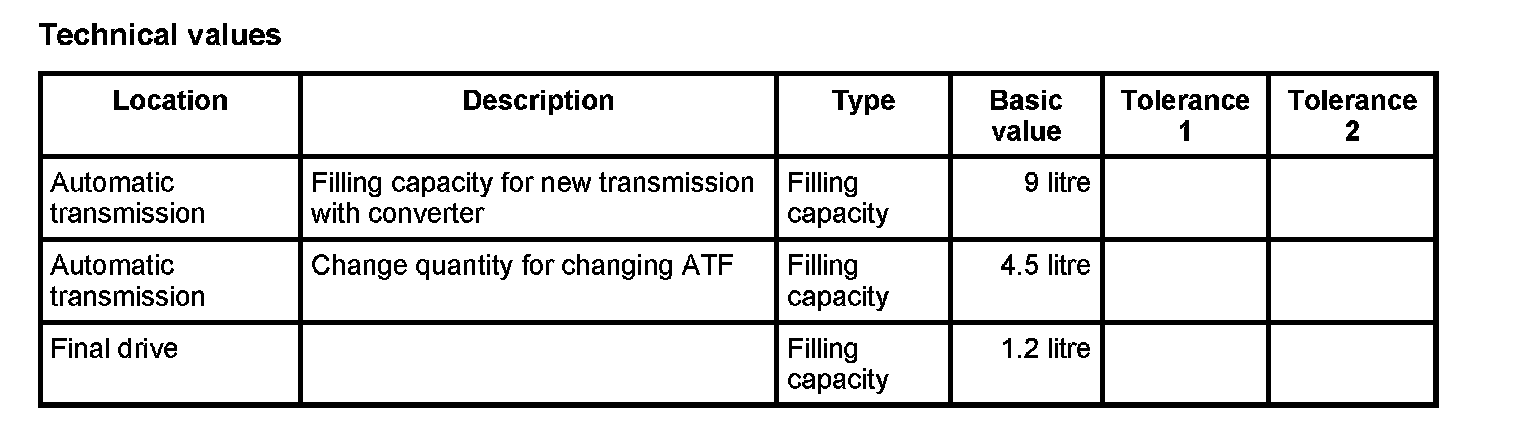 WM 3735TW Technical data, automatic transmissionTechnical values