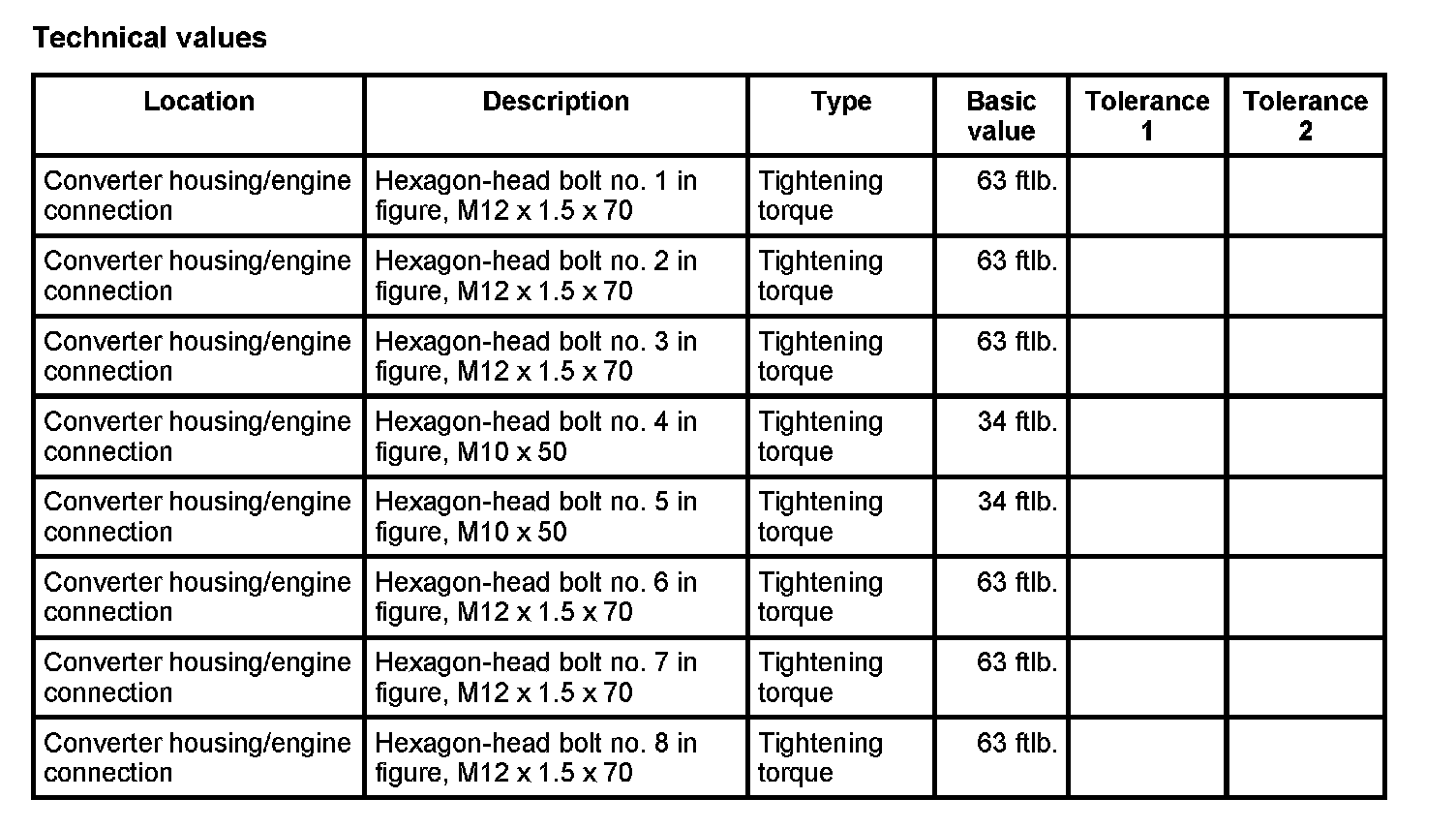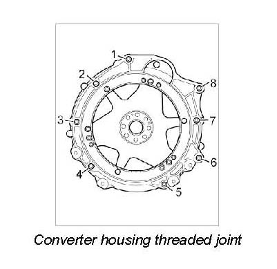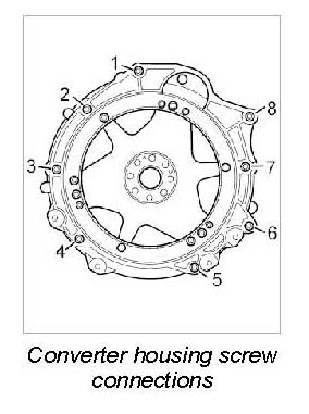 1. Unscrew connecting screws between converter housing and engine -1 to 8- and remove converter housing.