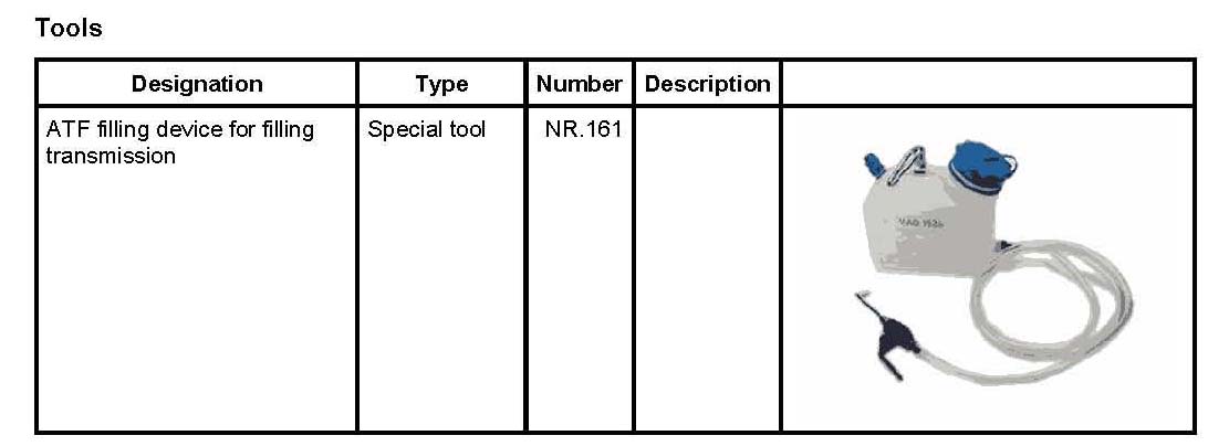 2. Fill oil for final drive with ATF filling device for filling transmission NR.161 until oil escapes at the oil filler opening.