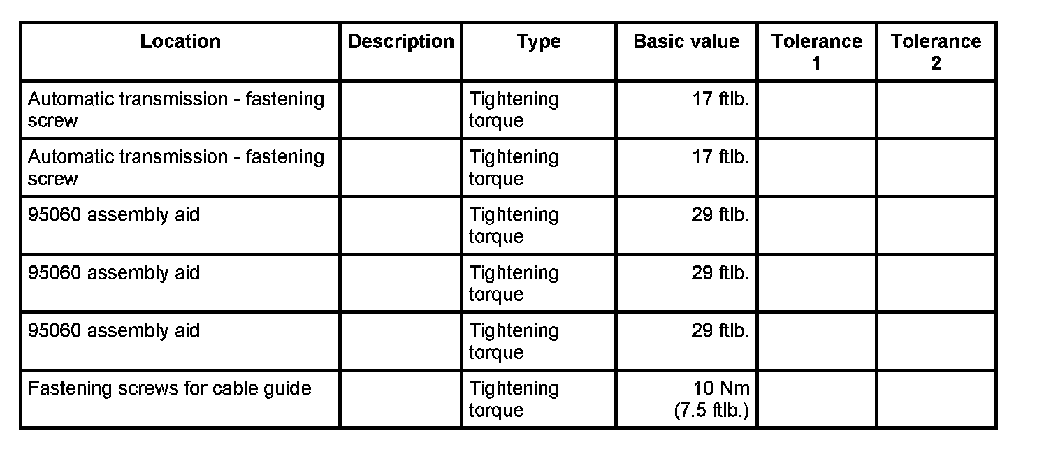 WM 373527 Removing and mounting automatic transmissionTechnical values