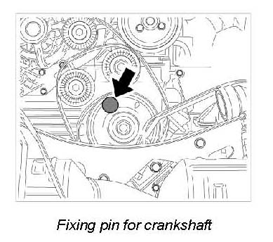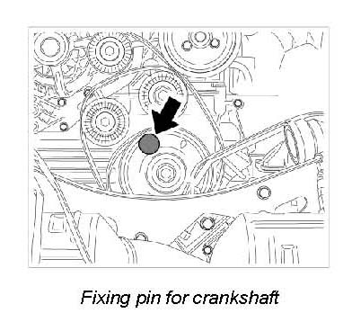 1. Turn engine clockwise until one of the bores (U4, U5, or U6, marked on belt pulley) in the belt pulley is aligned with the centering bore in the crankcase and fixing pin 95951 (short) can be inserted.