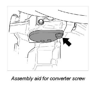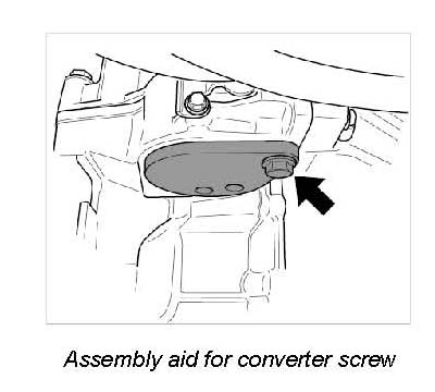 7. Screw in 2 screws of converter screw through openings in assembly aid 95960. Insert --> Tightening torque: 29 ftlb.