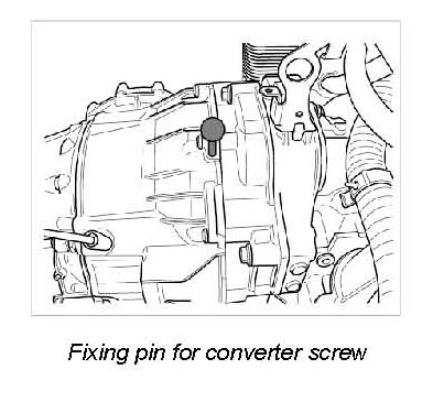 1. Insert fixing pins 95951 (long) through converter bell housing, fixing converter in its position.
