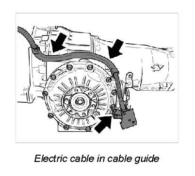 2. Screw in fastening screws and clip in cable guide in transmission. --> Tightening torque: 10 Nm (7.5 ftlb.)