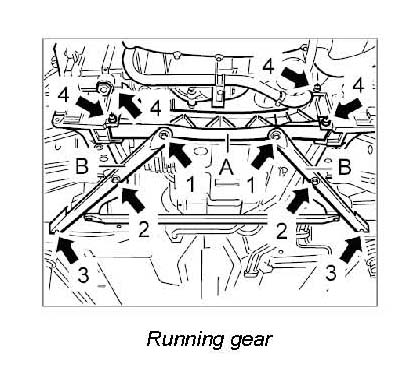 1. Install cross member -A- and diagonal braces -B-.