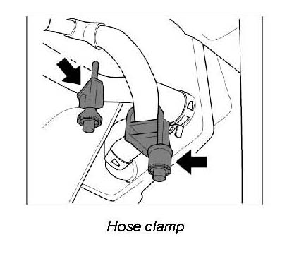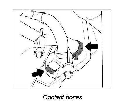 4. Remove plugs, connect coolant hoses to flanges and fit hose clamps.