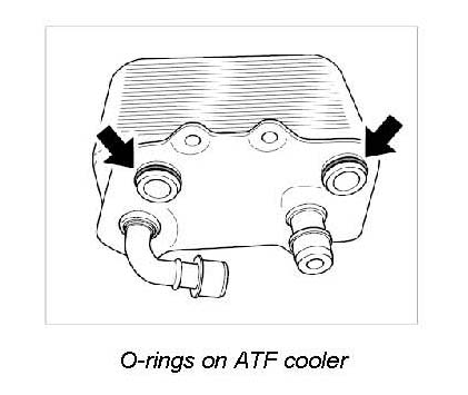 1. Always replace O-rings -arrows- on the ATF cooler.
