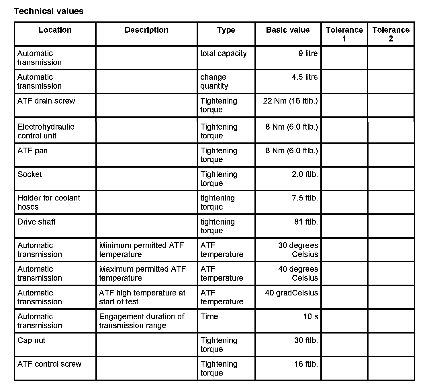 The ATF temperature at the start of testing must not be higher than --> ATF temperature: 40 gradCelsius.