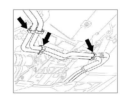 5. Disengage the coolant hoses in the area of the left drive shaft.