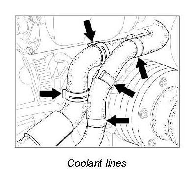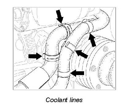 2. Disengage the coolant lines at the fastening points.