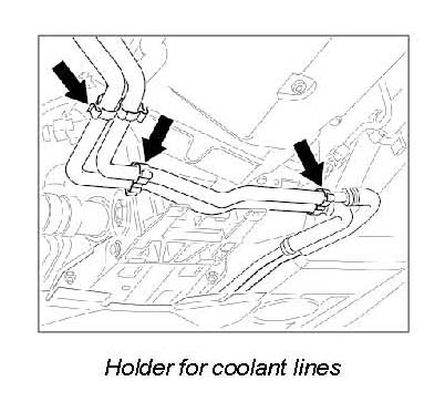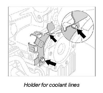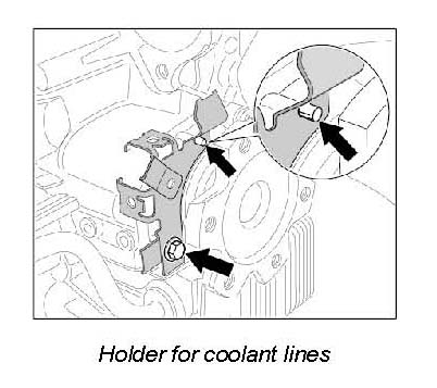 8. Remove the holder for the coolant hoses.