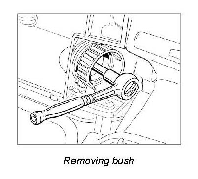 10. Unscrew guide bush fastening screw with assembly aid 9663 and pull out bush.
