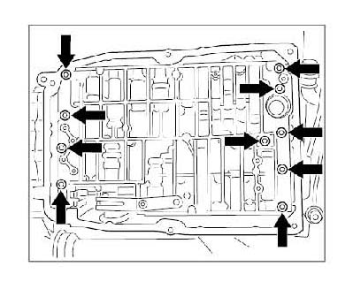 1. Loosen screws crosswise and remove ATF pan.