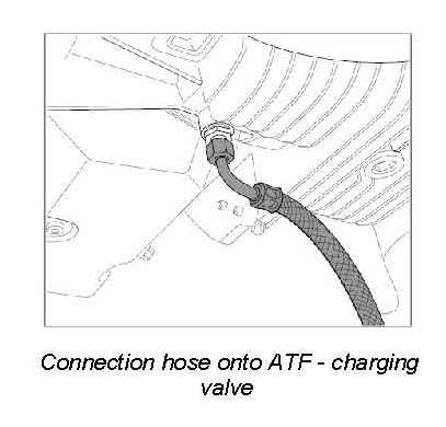 1. Unscrew connection hose 95071 from ATF - charging valve.