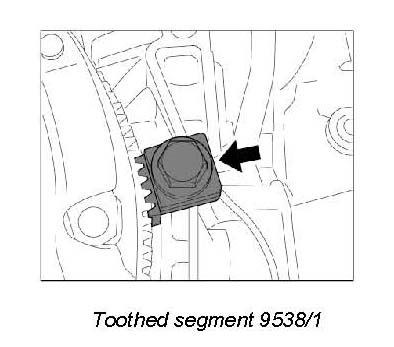 1. To counter, fit toothed segment 9538/1 to the crankcase using an M12 x 50 hexagon-head bolt (fine thread).