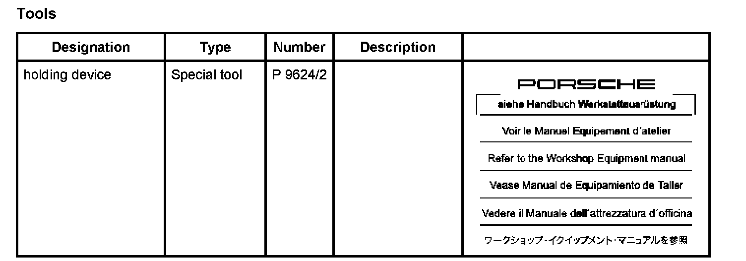 1. Unscrew fastening screws between stabilizer and engine mount, screw holding device P 9624/2 to stabilizer-engine mount, turn spindle upwards and support engine.