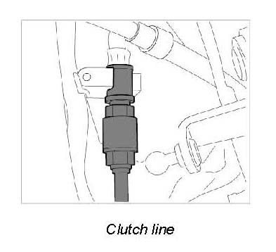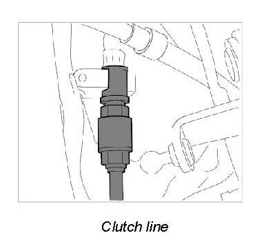 2. Remove plug from hydraulic line of clutch control and fit the line.